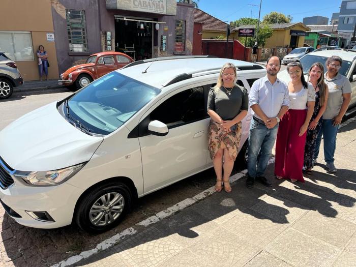 O prefeito de Caçapava do Sul, Giovani Amestoy, acompanhado da vereadora Patrícia Castro e da Secretária de Saúde Adjunta Renata Flores, Mayara Konze da Mota e Regilaine Soares Vivian receberam o veículo que veio para aumentar sua frota da Secretaria de Saúde.