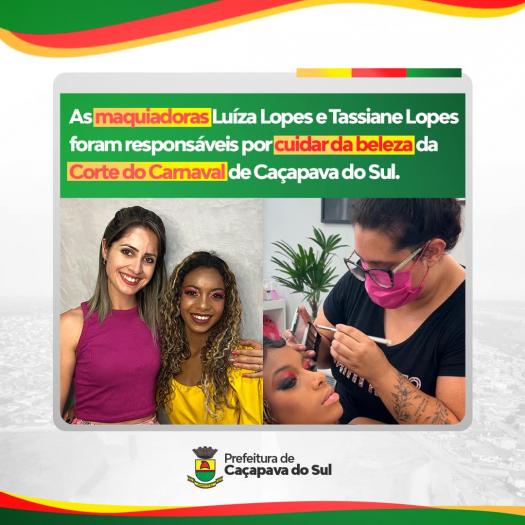 As maquiadoras Luíza Lopes e Tassiane Lopes foram responsáveis por cuidar da beleza da Corte do Carnaval de Caçapava do Sul.