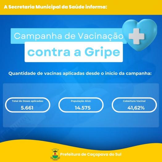 A Secretaria Municipal da Saúde de Caçapava do Sul, informa que a Campanha de Vacinação contra a Gripe Influenza, continua nas unidades de saúde da cidade e que, nessa semana, começa no interior do município.
