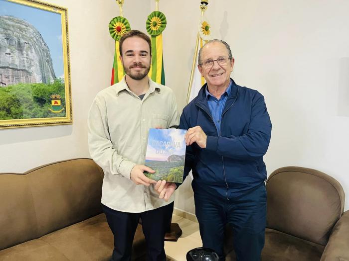 Na manhã desta segunda-feira, o vice-prefeito de Caçapava do Sul, Luiz Carlos Guglielmin, recebeu na Prefeitura Municipal, o estudante Felipe Zago Chaves, um dedicado aluno de Arquitetura.