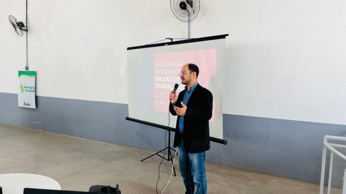 A capacitação em Saúde do Trabalhador é ministrada pelas equipes do CEREST VALES de Santa Cruz do Sul e 8ª CRS de Cachoeira do Sul. Na aula, são tratados assuntos referentes às notificações, agravos e doenças relacionados ao trabalho.