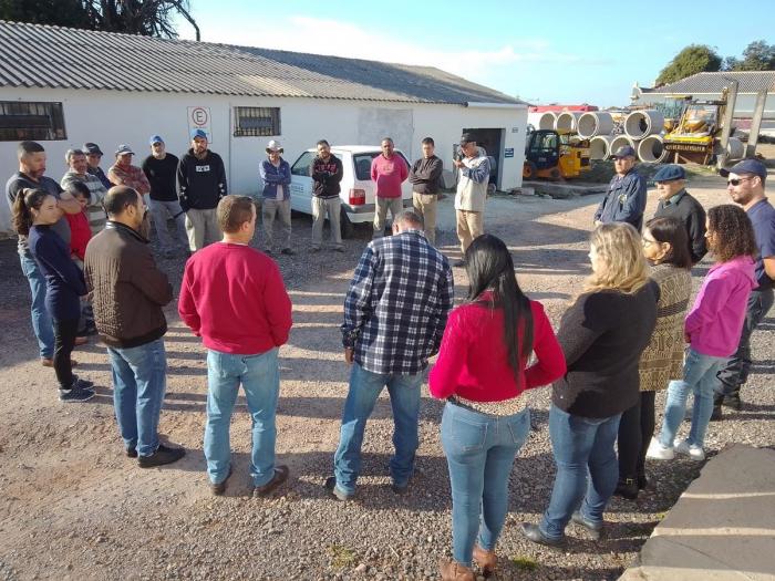Cedo da manhã, o novo secretário esteve junto aos motoristas e mecânicos na Oficina da Prefeitura, acompanhado do Prefeito Giovani Amestoy. Mais tarde, ainda pela manhã, estiveram em reunião com os demais funcionários da secretaria, dos departamentos da administração, iluminação pública, pinturas e placas, saneamento básico, marcenaria, limpeza urbana e trânsito.