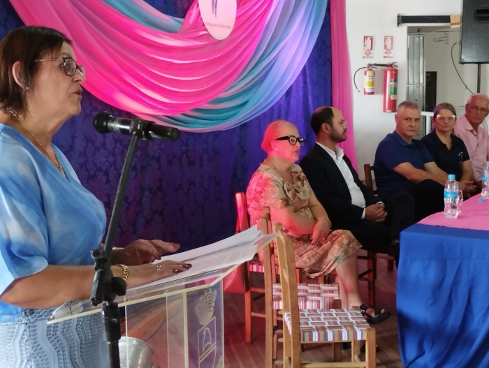 Na sequência, os presentes assistiram a palestra da professora Cris Vieira, doutora em educação, que abordou questões relacionadas à saúde mental e educação, trazendo reflexões sobre a inclusão escolar e a importância do cuidado para o sucesso escolar.