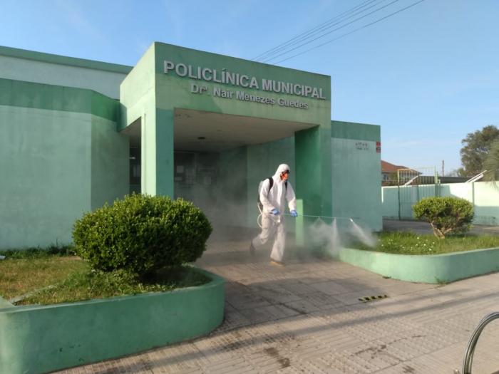 Nesta semana a Prefeitura de Caçapava do Sul, em parceria com as Secretarias de Saúde e Geral, realizaram serviços de desinfecção de locais de possíveis focos de infecção de coronavírus, como Pronto Atendimento, Centro de Atendimento ao Covid, Hospital, ESFs e demais pontos que ainda tem maior fluxo de pessoas.