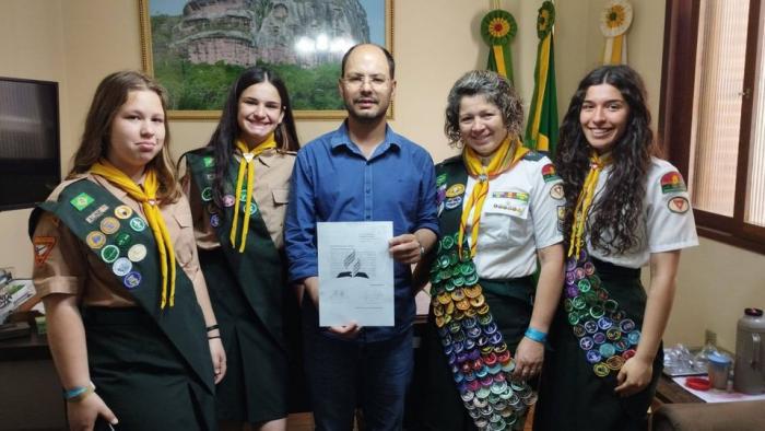 O Prefeito de Caçapava do Sul Giovani Amestoy' recebeu na tarde da quinta-feira, 17 de novembro, a senhora Mônica Santini de Oliveira Doki e integrantes do Clube de Desbravadores Guerreiros do Forte. O Clube, que é composto por jovens da Igreja Adventista do Sétimo Dia de Caçapava do Sul, busca em parceria com o Poder Executivo, o empréstimo de espaço na Vila Sul para a realização das reuniões do Clube que ocorrem quinzenalmente. Além disso o Clube ofereceu parceria junto a projetos sociais e ambientais desenvolvidos pelo Executivo.