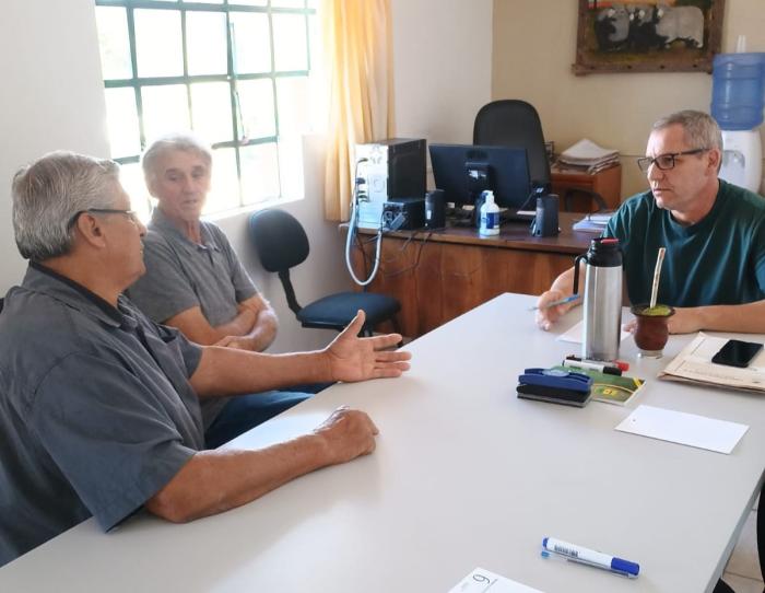 Nesta quarta-feira, 8 de janeiro, o Secretário de Agropecuária, Marquinho Vivian esteve reunido com os representantes da comunidade do Durasnal, Jocenir Xavier e Valtair Babieri, que foram buscar informações a respeito de uma bomba hidráulica que havia sido encaminhada para manutenção ainda no ano passado.