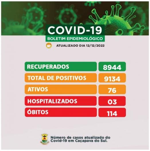 O Boletim informa ainda que há 03 pacientes internados em razão da Covid-19 e que agora com o falecimento de um paciente de 82 anos, são 114 os ÓBITOS por Covid-19 em Caçapava do Sul.