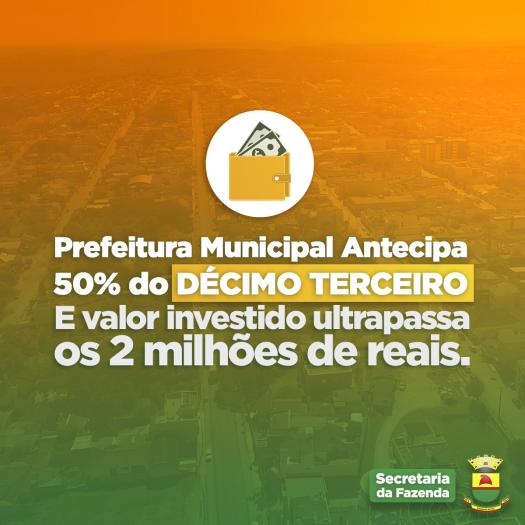 A Secretaria da Fazenda informou que vai antecipar o pagamento da primeira parcela do 13º salário, dos servidores ativos, inativos e pensionistas para o próximo dia 15 de julho. A medida, de acordo com a Secretária da pasta, Ihoko Nakashima Mota, é para atender ao pedido do Prefeito Giovani Amestoy de valorização dos servidores e como forma de injetar recursos na economia do município.