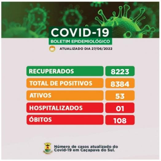 O Boletim desta Segunda-feira, 27 de JUNHO registra 8223 casos RECUPERADOS de Covid 19 em Caçapava do Sul, ou seja +36 casos em relação ao boletim anterior.