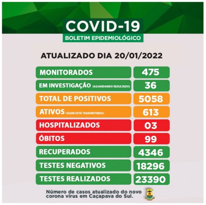 O Boletim desta quinta-feira, 21 de janeiro registrar o maior aumento nos casos de Covid 19 em Caçapava do Sul.