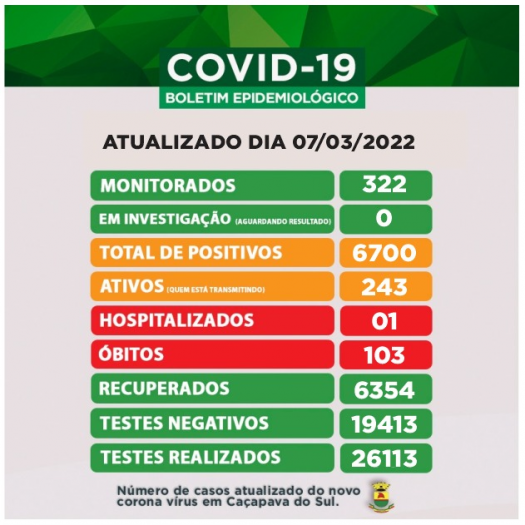 Este boletim informa que Caçapava do Sul teve contabiliza 103 óbitos por Covid-19.