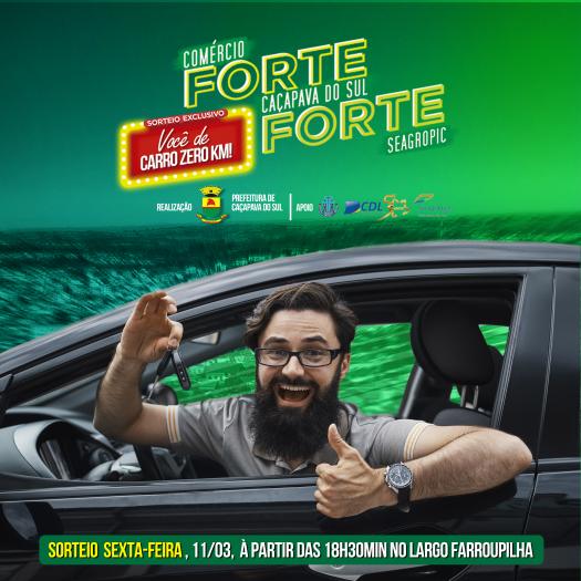 A Prefeitura de Caçapava do Sul, através da Secretaria de Agropecuária, Indústria e Comércio, vai premiar, com um carro zero km, o vencedor da promoção que incentiva o consumo no comércio local para movimentar a economia.