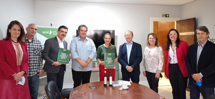 O vice Prefeito de Caçapava, Luiz Carlos Guglielmin, acompanhado do presidente do Instituto Brasileiro de Olivicultura (IbraOliva), empresário de Caçapava do Sul, Renato Fernandes, e seu vice-Presidente, Fábio Albino, acompanhados da produtora de Azeite Rosane Abdala, que é presidente da Associação Caçapavana de Olivicultores e o produtor Cultural Fernando Marques (Casa 1 / FullPlay) , se reuniram hoje, dia 05 de abril, no BRDE, em Porto Alegre, com os diretores do Banco para discutir parcerias para a I Festa do Azeite de Oliva de Caçapava do Sul.
