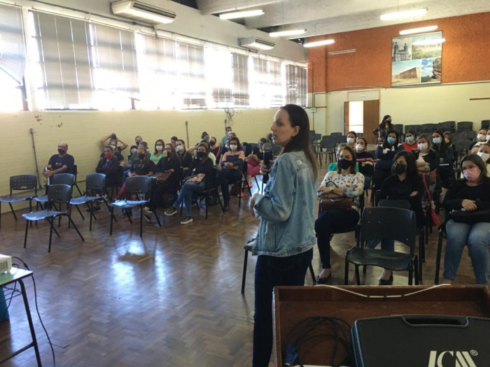 A educadora especial convidada, Gabriela Brutti Lenhart, trouxe para a palestra “Desafios e Possibilidades da Inclusão escolar para crianças com deficiência” informações acerca das deficiências e inclusão escolar, focando também nas pessoas com TEA – Transtorno do Espectro Autista.