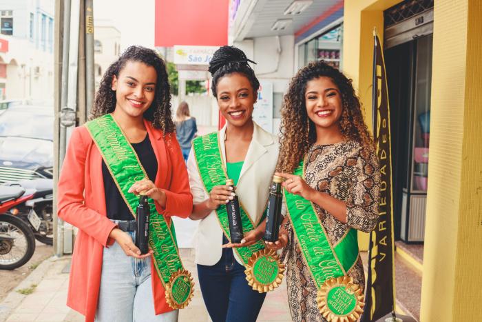 Elas receberam o anúncio do Prefeito Giovani Amestoy, e logo após, receberam as faixas, confeccionadas por Rafhael Munhós e os brindes das Lojas parceiras Origem, Ana Bijoux, Samanta Fernandes (maquiagem), Azeite D. José e Pousada e Azeite Cerro dos Olivais.
