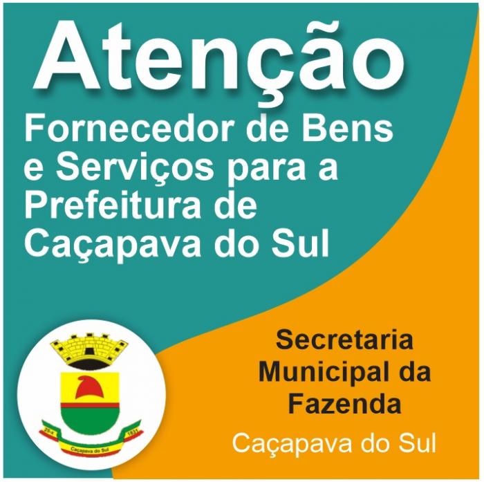 A Prefeitura Municipal de Caçapava do Sul NOTIFICA os fornecedores de bens e serviços que a partir de 30 de abril de 2022 o município passa a aplicar a Instrução Normativa da receita Federal do Brasil, nº 1.234/2012.