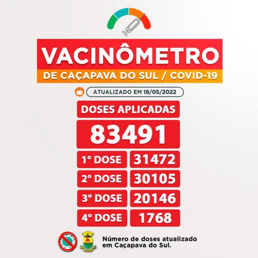 Até o momento foram 83.491 doses aplicadas ao total em Caçapava do Sul, destas, 31.472 foram da primeira dose, 30.105 da segunda dose do imunizante (89,53% da população com esquema vacinal completo), 20.146 da terceira dose (59,91% da população) e 1768 da quarta dose (5,25% da população) para os grupos já determinados conforme a chegada de cada remessa das vacinas.
