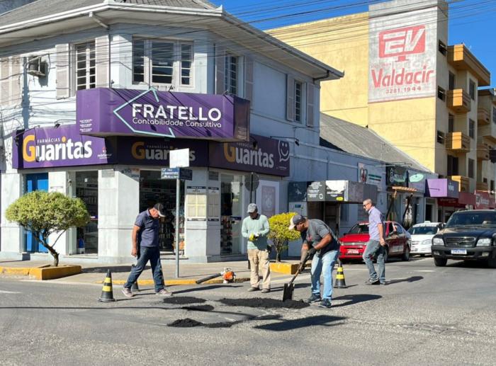 O Secretário de Obras, Paulo Oberto, destacou que este trabalho está sendo feito em parceria com a Corsan, utilizando asfalto para tapar buracos e recuperar as principais ruas da cidade.