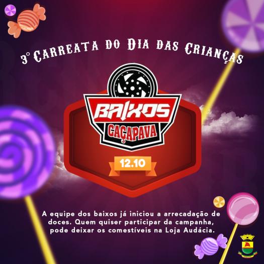 O evento será no dia 12 de Outubro, Dia das Crianças, às 14h e a carreata percorrerá as principais ruas dos bairros e centro. A equipe de baixos já iniciou a arrecadação de doces (balas, pirulitos e chocolates fechados individualmente), quem quiser participar da campanha, doando esses itens, pode deixar os comestíveis na Loja Audácia (Benjamin Constant).