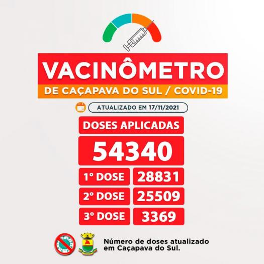 Até o momento foram 54.340 doses aplicadas ao total em Caçapava do Sul, destas, 28.831 foram da primeira dose, 25.509 da segunda dose do imunizante (75,6% da população com esquema vacinal completo) e 3.369 da terceira dose (10% da população) para os grupos já determinados conforme a chegada de cada remessa das vacinas .