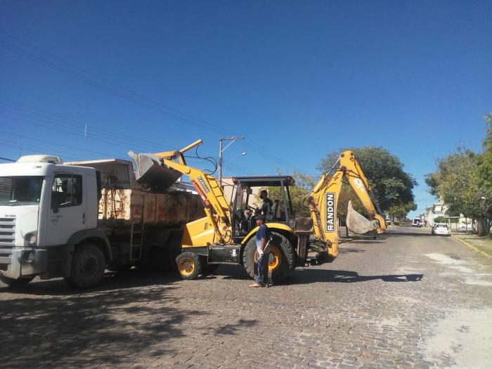 A equipe do recolhimento de restos de potas de árvores e limpeza de pátios (vegetação), da secretaria de obras de Caçapava de Sul, trabalha em diversos locais da cidade.