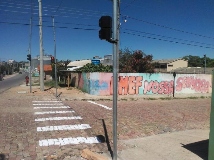 A rua Luiz Coelho Leal esquina com a av. Lima e Silva, no bairro Sul, nas proximidades da EMEF Nossa Senhora das Graças, recebeu nova faixa, nessa sexta-feira, dia 19.