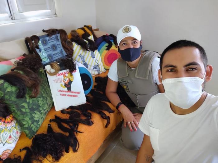 Uma das tarefas arrecadar doações de cabelos para a campanha solidária "Cabelos de aço".