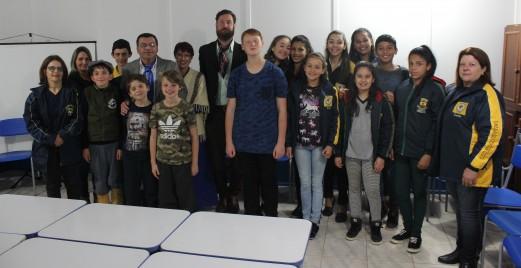 As visitas iniciaram pela Escola Municipal Augusto Vitor Costa, no Durasnal, onde o Patrono pode assistir à apresentação da Invernada Artística do DTG (Departamento de Tradições Gaúchas) Estância Crioula, idealizada e fundada pelo Patrono Delfino Luiz.