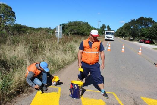 Trabalho realizado em parceria com a Secretaria de Obras e Daer, que visa realçar essas identificações que darão mais segurança aos pedestres na travessia pública.