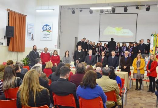 Após, o Padre Rudinei Lasch convidou a todos para uma bênção à Feira Literária e o patrono agradeceu o convite: