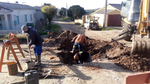 A Equipe de Saneamento Básico da Secretaria de Obras de Caçapava do Sul, efetiva conserto na rede de esgoto, na rua dos Lanceiros, Bairro Floresta e na rua Veranópolis esquina com rua Pedro Osório, Bairro Santa Rita.