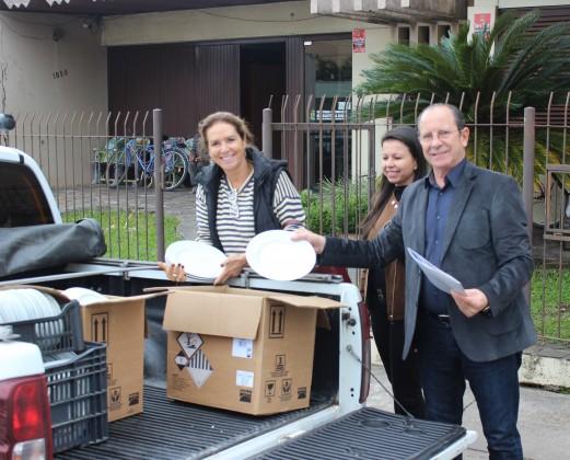 O vice preito Luiz Guglielmin fez hoje (24) a entrega à Secretaria de Assistência Social de 400 pratos doados pelo empresário conterrâneo Flávio Ferreira, contato este mediado pelo rotariano também caçapavano Jairo Oberto.