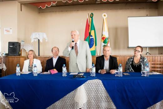 O vice-prefeito, Luiz Guglielmin, e o Secretário de Saúde, Juarez Teixeira, além do presidente da Câmara de Vereadores, Ricardo Rosso, apresidente do Conselho Municipal de Saúde, Solange Tavares, e LuzianaBeck, uma das organizadoras da conferência, presidiram a mesa de debates.