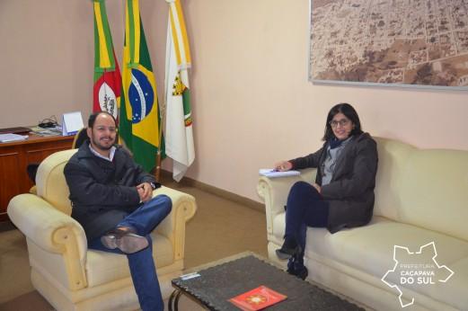 O Prefeito Giovani Amestoy recebeu no gabinete nesta terça-feira (06), Tania Mara Vargas, Gerente da agência Banrisul Caçapava do Sul para tratar de parcerias em projetos do município.