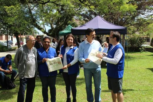 O Prefeito Otomar Vivian, a Secretária de Turismo Maria Alice dos Santos e da Educação, Maureli Lopes, estiveram no local para o início das atividades, acompanhados de um dos idealizadores do Geo Dia, o professor André Borba.