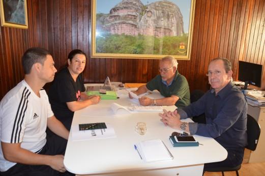 O Secretário Geral, Nei Tavares, e a futuracoordenadora do Conselho Municipal de Desportos (CMD), Valdirana Zago,se reuniram nesta terça-feira (07) para tratarem de assuntos pertinentes ao conselho, de responsabilidade de ambos. O vice-prefeito Luiz Guglielmin e o educador físico Gerson Barcelos também acompanharam a reunião.