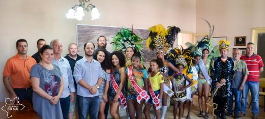 O prefeito Giovani Amestoy e o Secretário de Cultura e Turismo Leandro Bazotti receberam no Gabinete, nesta sexta-feira (24), presidentes das escolas de samba e blocos, representantes do Legislativo e da Câmara dos Dirigentes Lojistas (CDL), para apresentar os vencedores do concurso que elegeu a Corte do Carnaval 2017 de Caçapava do Sul.