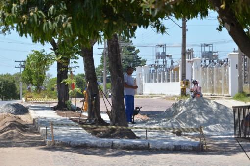 No local a Secretaria de Obras está colocando grama e plantando flores, além de revitalizar o local com calçada e passarela de cimento.