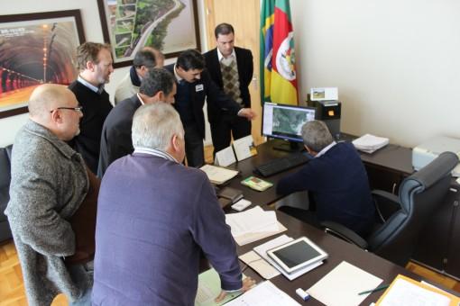 Enquanto o Superintendente mostrava no computador o mapa de Caçapava e as alternativas que devem ser discutidas entre os engenheiros, o Diretor da Unipampa explanava o número de alunos que a Universidade possui e os cursos que são oferecidos no campus de Caçapava do Sul. A reunião durou cerca 1h20min e contou também com a presença do assessor do Deputado Paulo Pimenta, Caio Tiemann.