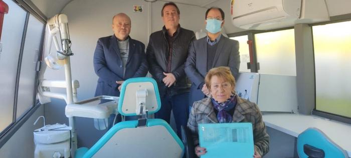 O Deputado, Prefeito e assessores estiveram ainda na Brigada Militar, para vistoriarem a Unidade Móvel de Saúde, com consultório médico, de enfermagem e de dentista que está fazendo roteiro por todo o interior do município para atender a população do interior e bairros mais afastados que não têm ESFs.