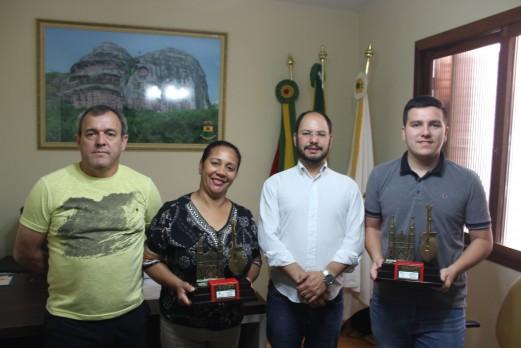 O Prefeito Giovani Amestoy recebeu nestaquinta(29) a Patronagem do CTG Sentinela do Forte, Gilnei e Lucas Marques e Edila Maria Henriques Fonseca, que vieram apresentar o Troféu de Finalistas em Danças Tradicionais, força B, do ENART 2018. Chegando pelasegundavez consecutiva na final, o grupo conquinstou o décimo lugar neste ano.