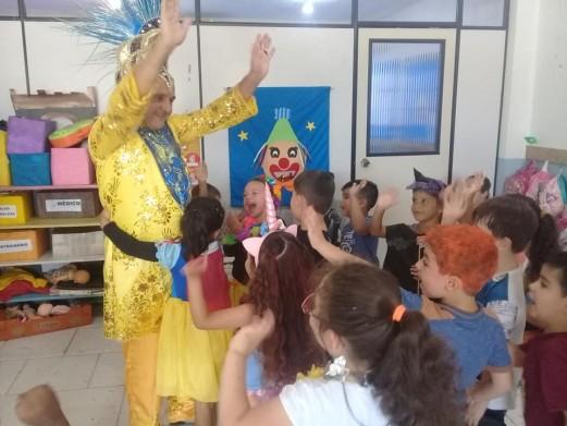 Osvaldo, que estava fantasiado, brincou e divertiu mais de 120 crianças e a equipe técnica do quadro da escola.