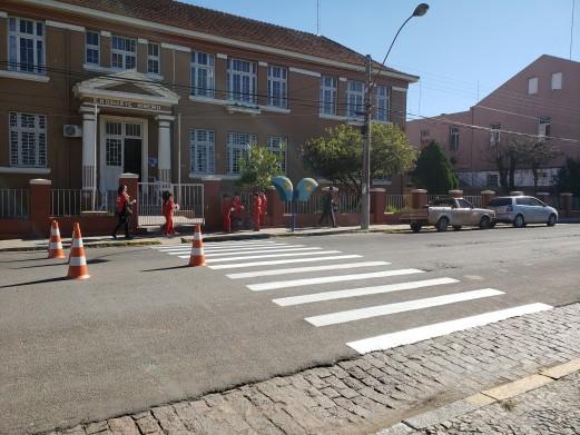 Outras faixas foram pintadas nas esquinas da Rua Benjamin Constant, Rua Borges de Medeiros e esquina com a Avenida Coronel Coriolano Castro.