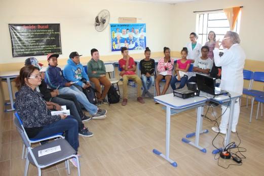 Estão sendo realizadas ações de combate ao mosquito, saúde auditiva, bucal e ocular, alimentação saudável, prevenção ao uso de álcool e drogas, promoção da cultura da paz e cidadania, prevenção de acidentes, direito sexual, situação vacinal, práticas corporais e identificação de agravos de doenças em eliminação.