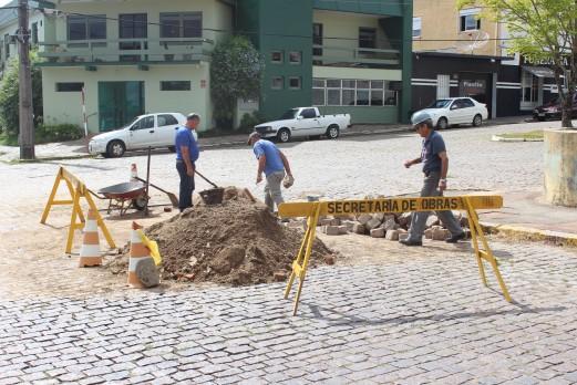 Está sendo pavimentada a esquina da Avenida Cel. Coriolano Castro com a Rua Barão do Rio Branco (Hospital), onde foi recuperado um esgoto.