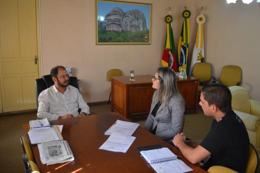 O prefeito Giovani Amestoy esteve reunido na manhã desta quinta-feira (08), com a diretora do Senac (Serviço Nacional de Aprendizagem Comercial), Patrícia dos Passos e o responsável pelo setor administrativo, Rodrigo Almeida.