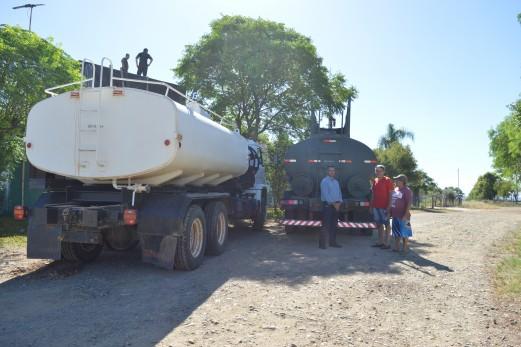 A Secretaria de Agricultura, Industria e Comércio, em parceria com o 4º Batalhão Logístico do Exército de Santa Maria, está com dois caminhões tanque, distribuindo água nas regiões mais atingidas pela estiagem no município.