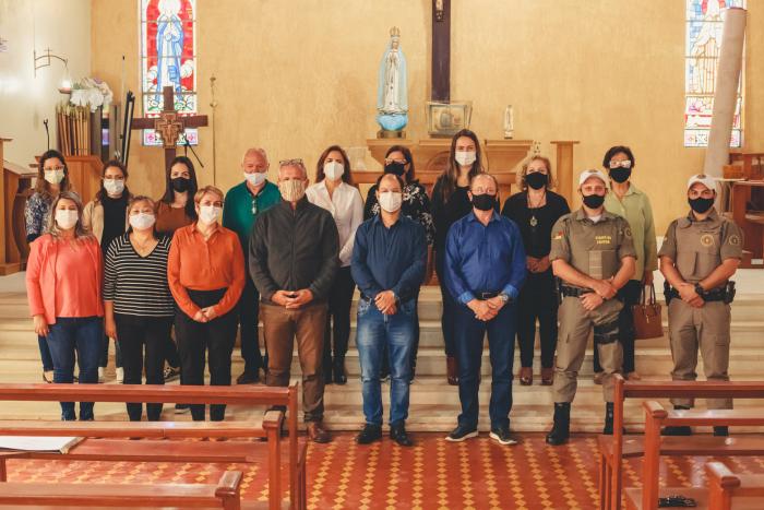 Estavam presentes o Prefeito Giovani Amestoy, acompanhado do Vice-Prefeito, Luiz Guglielmin, da Secretária de Saúde municipal, Ines Salles e sua equipe de Saúde, Secretária da Fazenda Ihoko Mota, Secretária de Assitência Social Andressa Lisboa, sua adjunta Zoe Silveira, o Padre Antônio com representantes da capela e representantes da Brigada Militar.