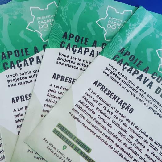 A Secretaria de Cultura e Turismo, em parceria com a Sedac e Geoparque Caçapava do Sul, preparou um material informativo para as empresas locais e regionais divulgando a Lei de Incentivo à Cultura (LIC).