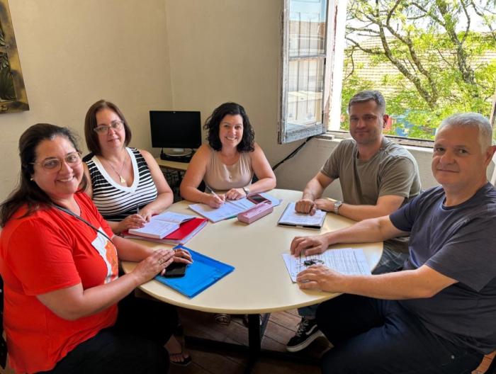 Na manhã desta terça-feira, dia 7 de janeiro, reuniram-se o Secretário Municipal de Educação, Silvio Tolfo Tondo, a Secretária Adjunta Janice Alves, o Coordenador Administrativo Alan Oliveira, a Coordenadora Pedagógica Geruza Cassol e a Diretora da EMEF Patrício Dias Ferreira, Vanusa Dias para tratar da reforma da referida escola e as adequações para o início do ano letivo.